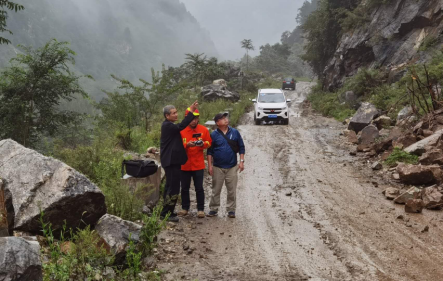 領(lǐng)導(dǎo)對(duì)崩塌現(xiàn)場(chǎng)險(xiǎn)情查看指導(dǎo)