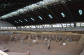 秦始皇兵馬俑博物館,是建立在兵馬俑坑原址上的遺址性博物館。被譽為“世界第八大奇跡”。通過參觀學(xué)習(xí),大家對兩千年前這支地下大軍驚嘆不已,他們披堅執(zhí)銳,軍容嚴(yán)整,氣勢磅礴,一種神秘的魔力恍惚間會把人引入戰(zhàn)馬嘶鳴,鏖戰(zhàn)在即的歷史畫面。它不僅是中國人民、也是全人類的一份珍貴文化財富。