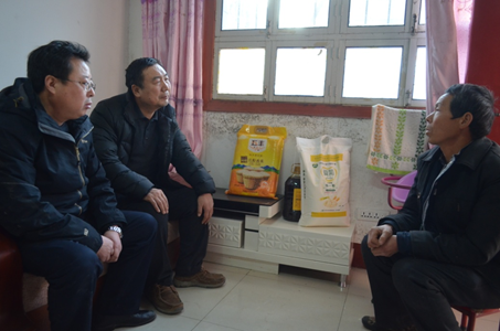 1月25日,劉書記一行帶著米、面、油等慰問品來到蔡小寧家,給老蔡送去了慰問金。在蔡家,劉書記親切的與老蔡話家常,仔細詢問今年農作物收成收入情況,詢問老蔡老伴的病情發展及醫治情況。劉書記對老蔡說,馬上要過年了,一來是一直不放心,所以今天專門過來看看,知道老嫂子病情穩定,今年家庭生活也有改善,心里非常高興。二來也是過來給你和老嫂子拜個早年,祝你們全家新年快樂!