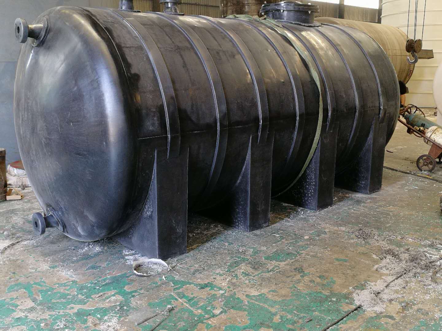 黑色儲液罐采用聚乙烯原料滾塑一次成型,聚乙烯是乙烯的高分子聚合物,因生產方法不同,產品分為高密度(低壓)和低密度(高壓)兩種,二者性質相似,但高密度聚乙烯在無負荷和短期內耐溫較高些(100℃,低密度為75℃),強度也較高。在載荷和高溫下則產生蠕變,長期使用一般不超過65℃。