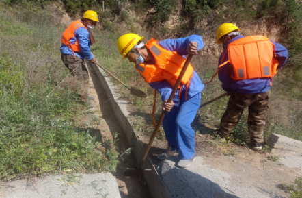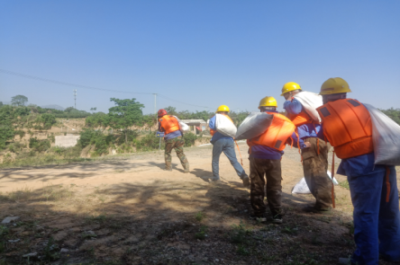 當日上午8點整,秦太選廠組織相關參與人員在辦公樓前進行集中,并對本次演習簡要講解。本次演習假設場景為連續強降雨,導致有洪水漫入庫內并發現排洪渠內有樹木雜草,庫內水位不斷上升已接近警戒線,存在漫壩危險,需啟動應急預案。演習地點為寺溝尾礦庫。演習內容為監測人員發現險情及時上報,興地公司立即啟動《尾礦庫生產安全專項應急預案》,各單位、部門應急救援隊員迅速集結、緊急增援。增援隊伍到達現場后,應急搶險分隊、警戒疏散組、物資保障組、技術支持組和醫療防護組分別按照各自的職能開展相應工作。搶險工作主要分為尾礦庫壩面人工堆積防洪壩,馬道排洪渠清除雜物,尾礦庫下游村莊村民疏散。